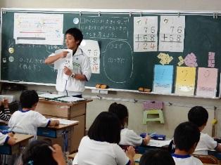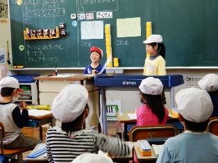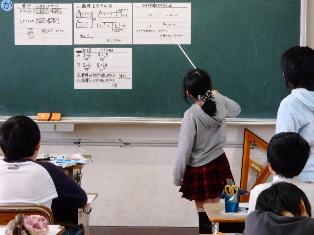 考えた計算の仕方を、今度は、クラスのみんなに説明しています。