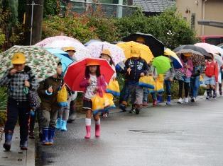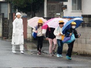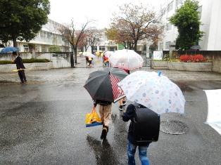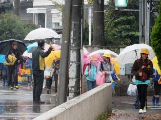 生憎の雨の中ですが、事故なく登校することができました。