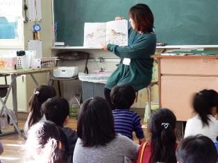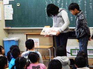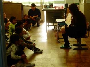 1年生と2年生はお兄さんお姉さんによる読み聞かせです。