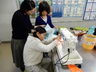まだまだミシンの操作に不慣れな子どもたちなので、