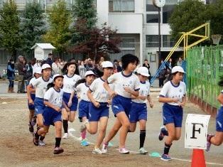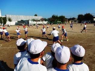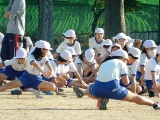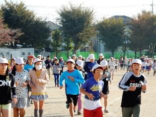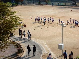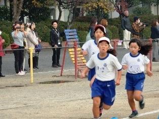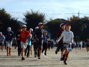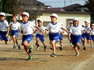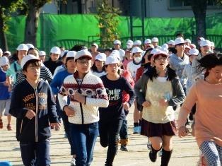 そして、登校してきた高学年の子どもたちが、持久走大会が