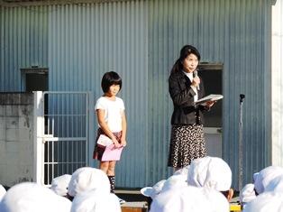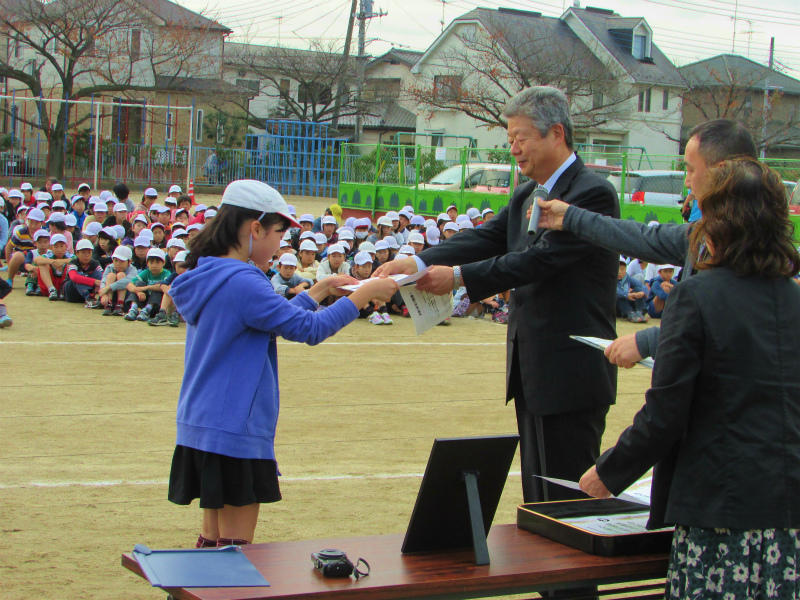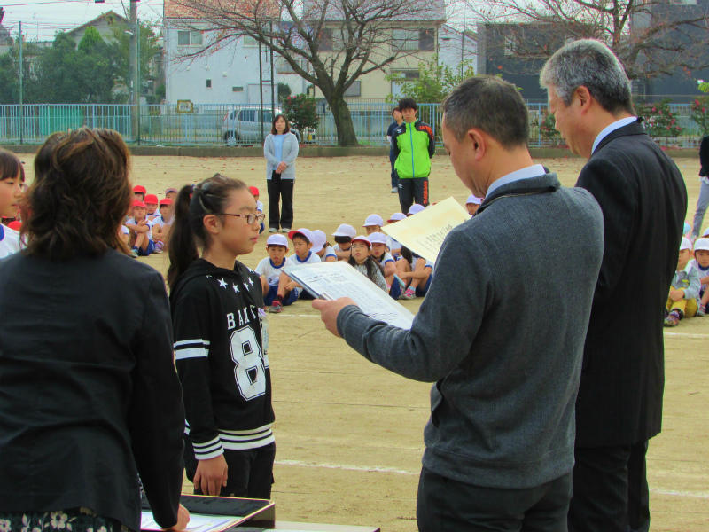 今日は、2学期の子ども達のがんばりを紹介する表彰朝会が