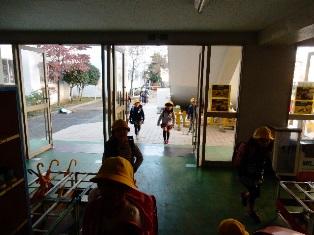 今日の避難訓練は、帰りの会の時間に実施しました。