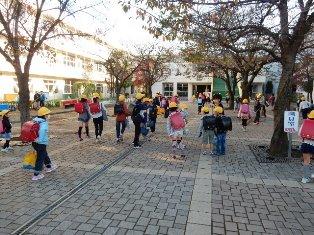 今日も、保護者、地域の方々や交通指導員さんに見守られ、