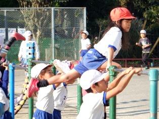 今日も鉄棒で練習に励む1年生です。たくましさが増してきました。