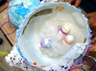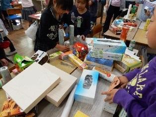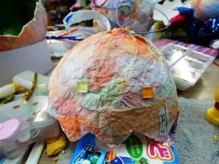 4年生の図工の授業です。卵のカラの部分と中身ができあがってきました。