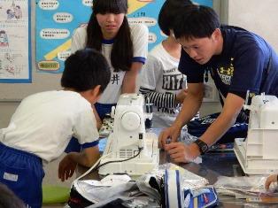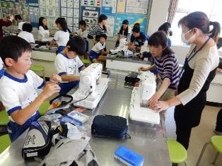 5年生の家庭科の授業では、ミシンボランティアとして