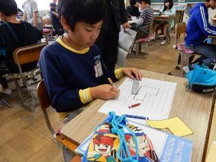 5年生は算数の授業で、合同な四角形で敷き詰める問題に