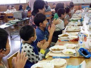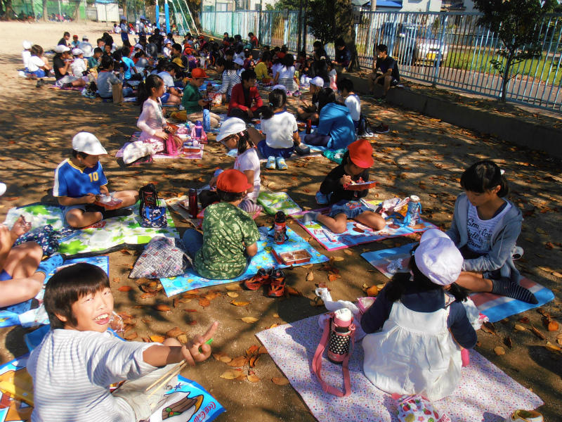 6年生が中心になって、各グループ輪になって楽しく昼食をとりました。