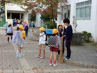 6年生は、ボランティア活動で落ち葉掃きをしています。