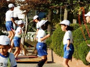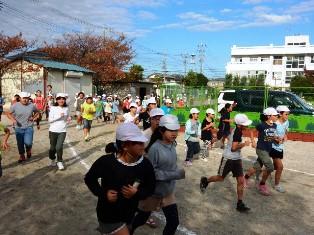 汗をかいて、がんばって走ったという表情の子どもたちが