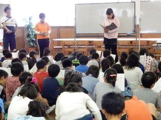 1年生と2年生は、春日部おはなしの会の皆さんに本を読んでいただきました。