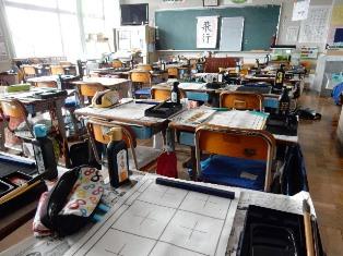 教室内では、廊下側の出入り口を机やイスでバリケードを築いていました。