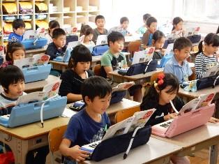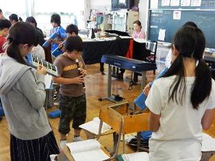 6年生は音楽の授業で、リコ-ダ-と鍵盤ハーモニカの合奏を