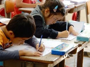 5年生の教室に行ってみると次の時間の書写(毛筆)の準備ができています。