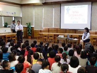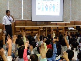 不審者対応避難訓練に引き続き、1年生と2年生は、安全教室を行いました。