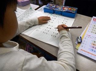真剣なまなざしで一文字一文字を丁寧に書いています。
