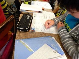 5年生は算数の授業で、分数のたし算、引き算の計算です。