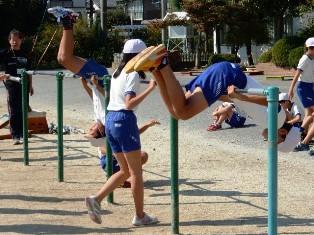 運動委員会の皆さんの逆上がり教室の効果で、鉄棒では、