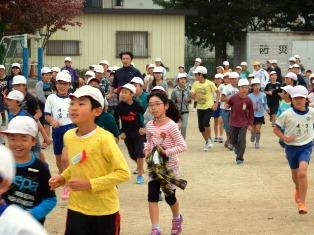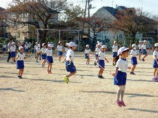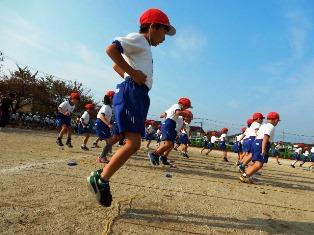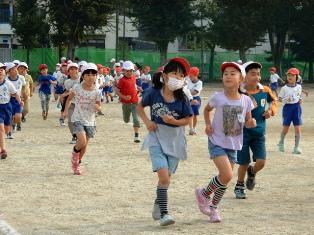 朝マラソンが終わった子どもたちの様子を見ていると、
