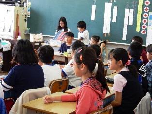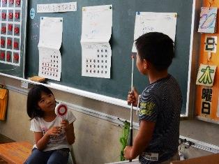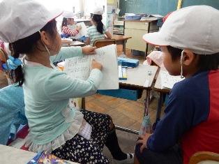 2年生は国語の授業で、「お手紙」の音読劇の確認です。