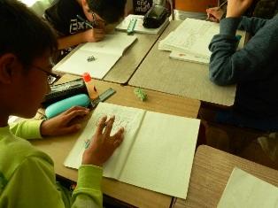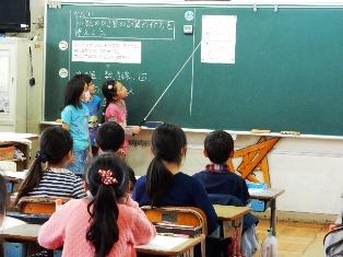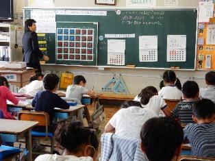 4年生は算数の授業で、おはじきの数を工夫して求めています。