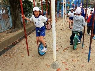 今日も鉄棒ではたくさんの子どもたちが練習に励んでいます。