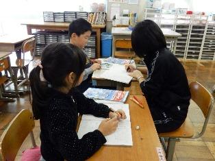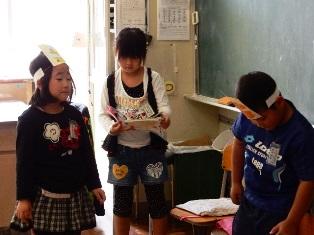 3人一組で行っているのは、「お手紙」の音読劇の発表会