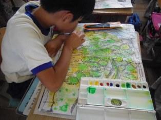 6年生は図工の授業で、絵を描いています。えんぴつでの構図が終わり、