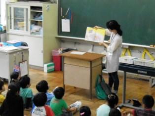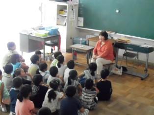 読み聞かせです。お話の世界に引き込まれ、静かに聞いていました。