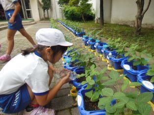 ニコニコしながら水くれをしています。中には、担任の先生が育てている