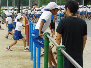 下は、4年生の体育の授業の様子です。「足かけ上がり」を練習しているようです。