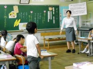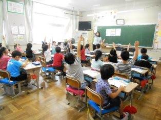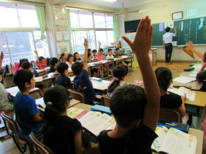 手のあげ方、きれいですね。小学生としての自覚が身についてきています。