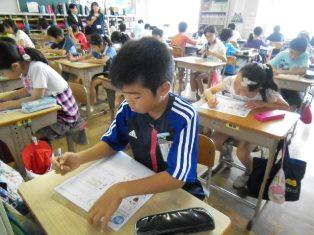 今日の朝の活動は、チャレンジタイムです。算数の計算や国語の漢字など、