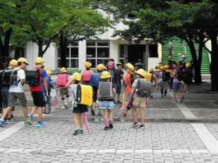 今朝は、昨日までの雨がやみ、子どもたちも傘がいらないので、