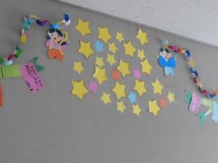 6・7組の子どもたちが作ったもので、願い事を書いた短冊も掲示されています。
