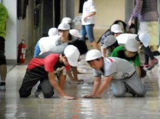 今日も6年生が1階廊下の清掃をしています。毎日毎日の清掃で、