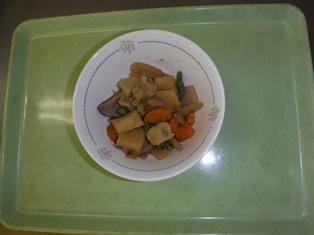 今日の給食の筑前煮には、6年生が学校ファームで育てた