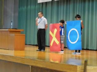 はじめに、昨日の陸上大会に参加した児童から御礼のあいさつを行いました。