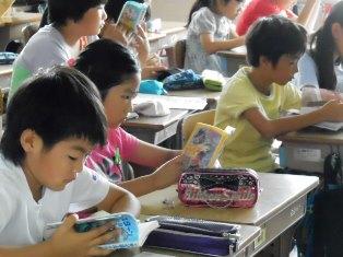 1・2年生の読書タイムは、保護者の方々による読み聞かせでした。