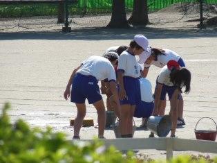 先生方と共に、水抜きをしています。運動会を明後日に控え、運動会の練習が