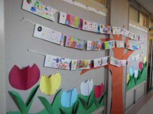 1階の通路と1年生の廊下には、子どもたちの力作の鯉のぼりが泳いでいます。