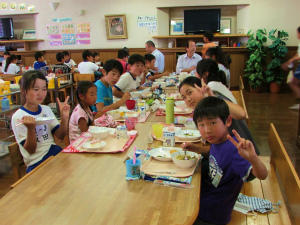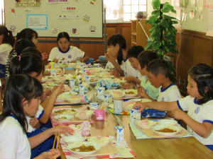 本校では、月に1回、誕生日の同じ月の児童と教職員が一緒になり、給食を
