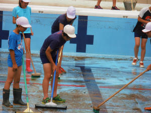 あいにくの雨でしたが、今日のさわやかタイムに「プール開き」を行いました。