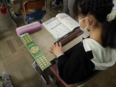 【3年生 算数】そろばんの学習を行いました。思うように指が動かずに大変でした。
