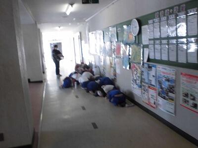 【休み時間】地震を想定したショート避難訓練を行いました。