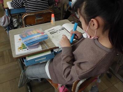 国語辞典を上手く活用しています。漢字の構成はなかなかむずかしいのですが、子どもたちは上手に調べています。