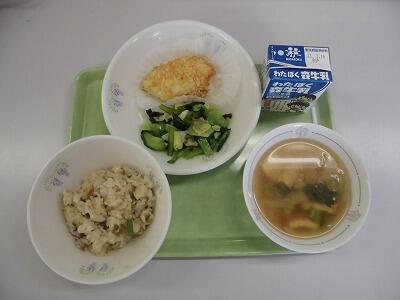6月8日(木)本日の給食 きなこ和えは、笑顔になります。