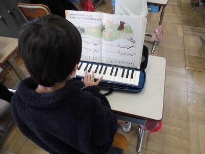 【1年生 音楽】鍵盤ハーモニカで、上手にこいぬのマーチを演奏できるようになりました。