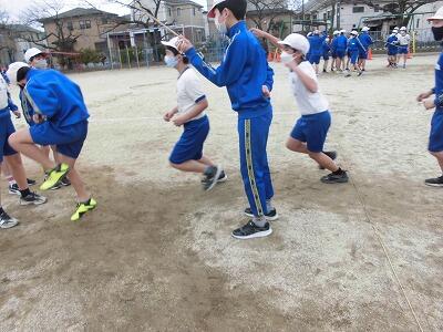 【体育朝会2・4・5年】長縄8の字跳びを行いました。朝の寒さも和らいできました。